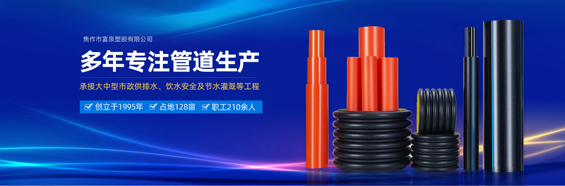 - 焦作市富泉塑胶有限公司,创立于1995年,是一家集研发、设计、生产、销售为一体的大型管材企业。公司位于太极故里、黄河之滨一一河南焦作温县。公司占地128亩,现有职工210余人,其中具有中技术职称的19人。生产、检验设备58台(套),包括PVC实壁管生产线11套、PE实壁管生产线12套、HDPE双壁波纹管生产线6套、PVC双壁波纹管生产线5套,检验设备14台(套)。主要产品有:Φ20mm-630mm、各种压力规格的PVCU、PVC-M、PE给水管材,PVC-U节水灌溉管材,HDPE燃气和矿用管材,DN200-800mm的HDPE、PVC双壁波纹管及各种喷灌、滴灌工程材料。承接大中型市政供排水、饮水安全及节水灌溉等工程?! 「蝗芙汗局厥硬返闹柿?、安全、环保和节能,在同行业中率先完成了“新华节水产品认证”,全方面通过ISO9001:2008国际质量管理体系、IS014001:2004环境管理体系和OHSAS18001职业健康安全管理体系的一体化导入,并建立起规范的现代企业管理体系。公司以“质量”为先导,采用质量跟踪、多环节把关的方法,组建具有行业水准的企业技术检测中心,常年委托水利部节水灌溉设备检测中心、河南省产品质量监督检验院对产品跟踪检测,并由中国人民保险公司承保产品质量。公司连续多年被河南省水利厅确定为“安全饮水设备、节水灌溉设备”定点生产企业,并获得“中国名优产品”“质量、服务、信誉AAA企业”“河南省**产品”“河南省水利企业”“河南省守合同、重信用企业”等荣誉称号?! 「蝗芙汗炯岢帧坝没稀钡姆窭砟睿て谝岳矗矫婀刈⒖突Ъ壑?,不断提升服务水平。服务队伍常年为客户的产品设计、施工、安装提供合理的方案和全程细致、周到、**、快捷的技术服务。公司自成立以来,一直坚持以人为本的宗旨,塑造企业形象,并致力于新产品的开发,凭借雄厚的技术开发能力,先进的工艺制造流程,严格的质量管理保证体系,优良的售后服务网络,已成为河南省大的饮水、灌溉及排水管材设备制造商。产品畅销全国,而且还以公司雄厚的综合实力在业界中占据着重要的地位。